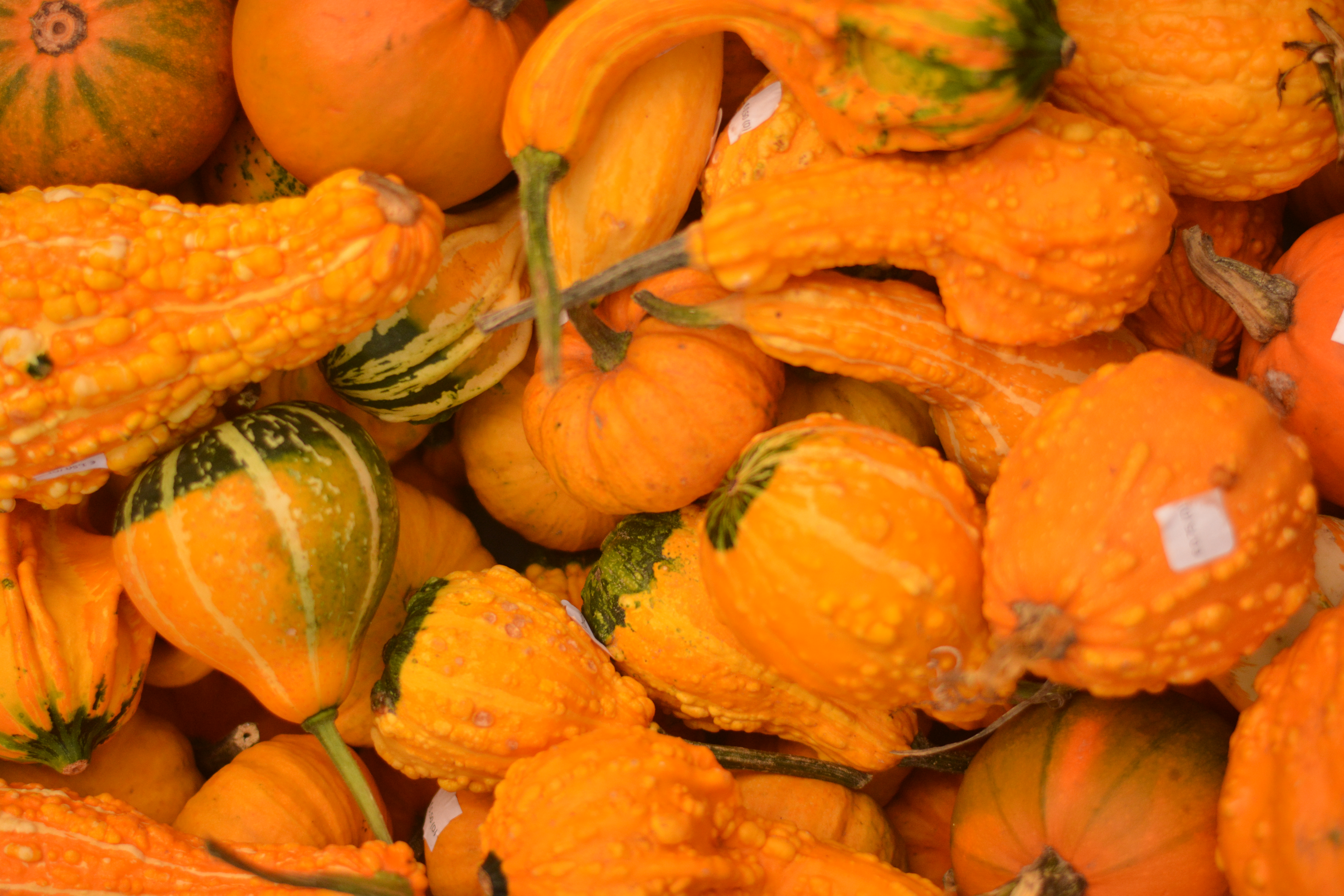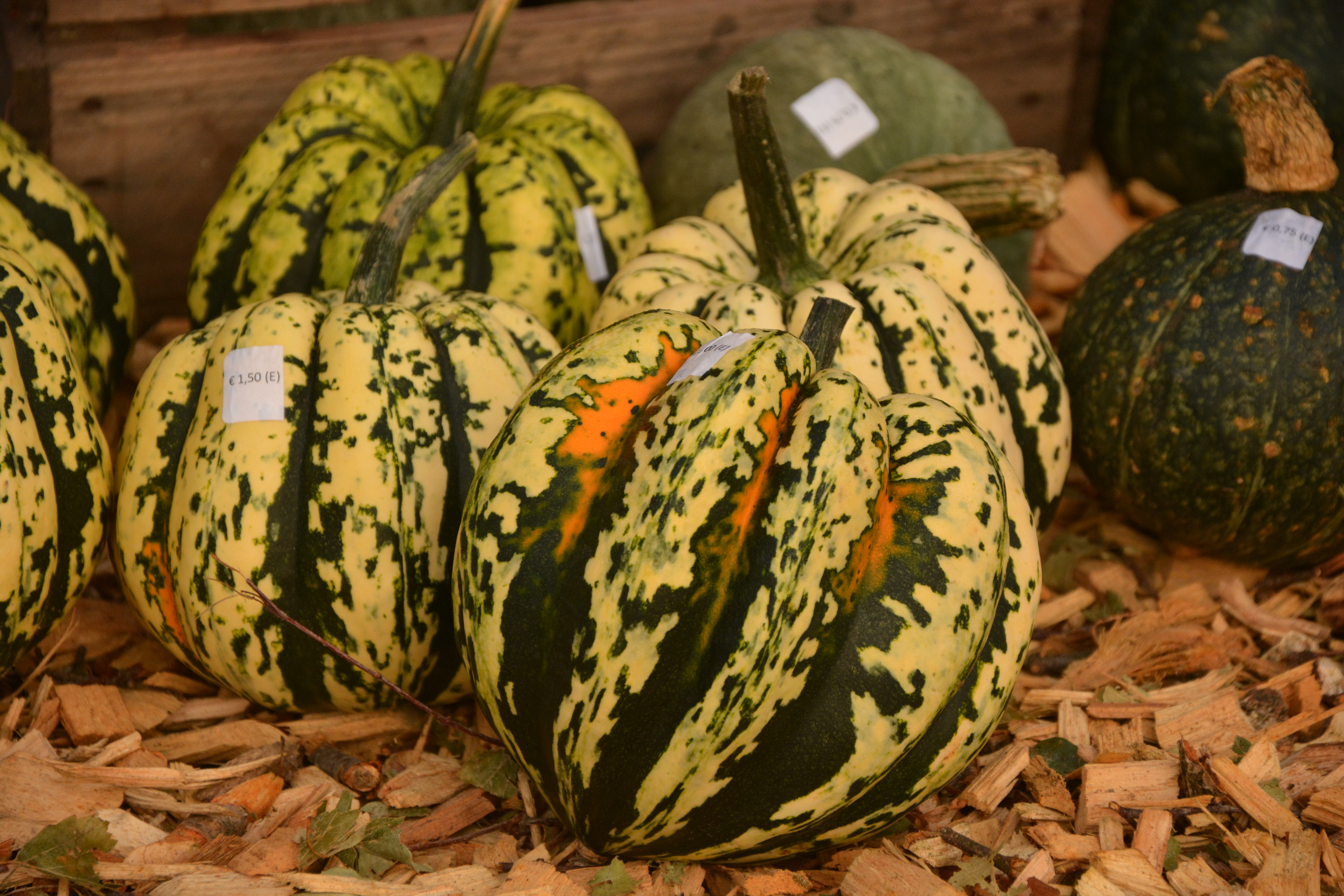 Elk jaar planten we vele verschillende soorten pompoenen en kalebassen op ons land. Elk seizoen worden we opnieuw verrast door de prachtige kleuren en vormen die onze pompoenen voortbrengen.